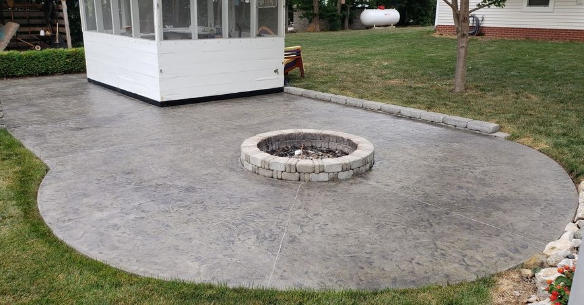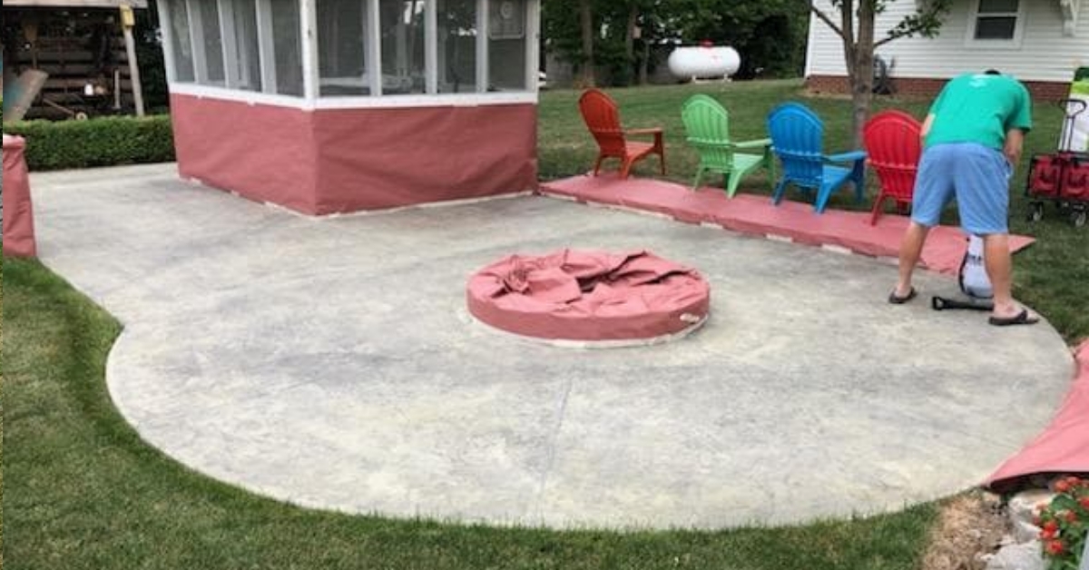 This DIYer effortlessly transformed a circular stamped concrete patio featuring a firepit in the center. Using Light Charcoal Antiquing™ Stain, the project was completed with ease and speed, resulting in a refreshed outdoor space.