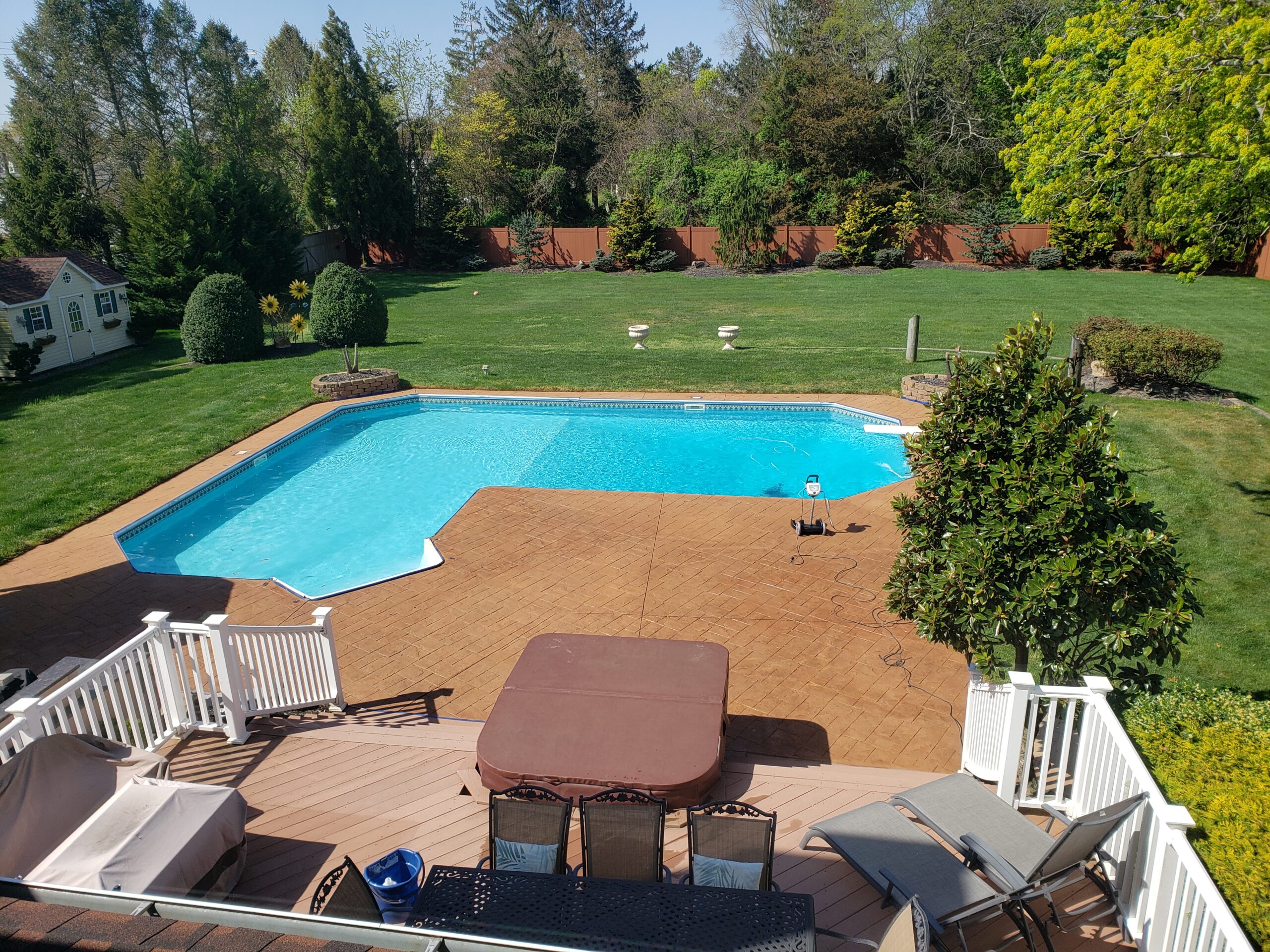 Restraining stamped concrete around pool. It was last stained 10 years ago. - Personal Tips: